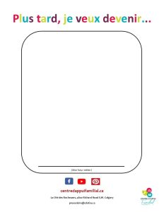 Voici pourquoi, aujourd’hui, j’ai préparé une petite affiche pour que tu puisses illustrer ton métier de rêve. Un plus grand pourra t’aider à écrire le nom du métier.