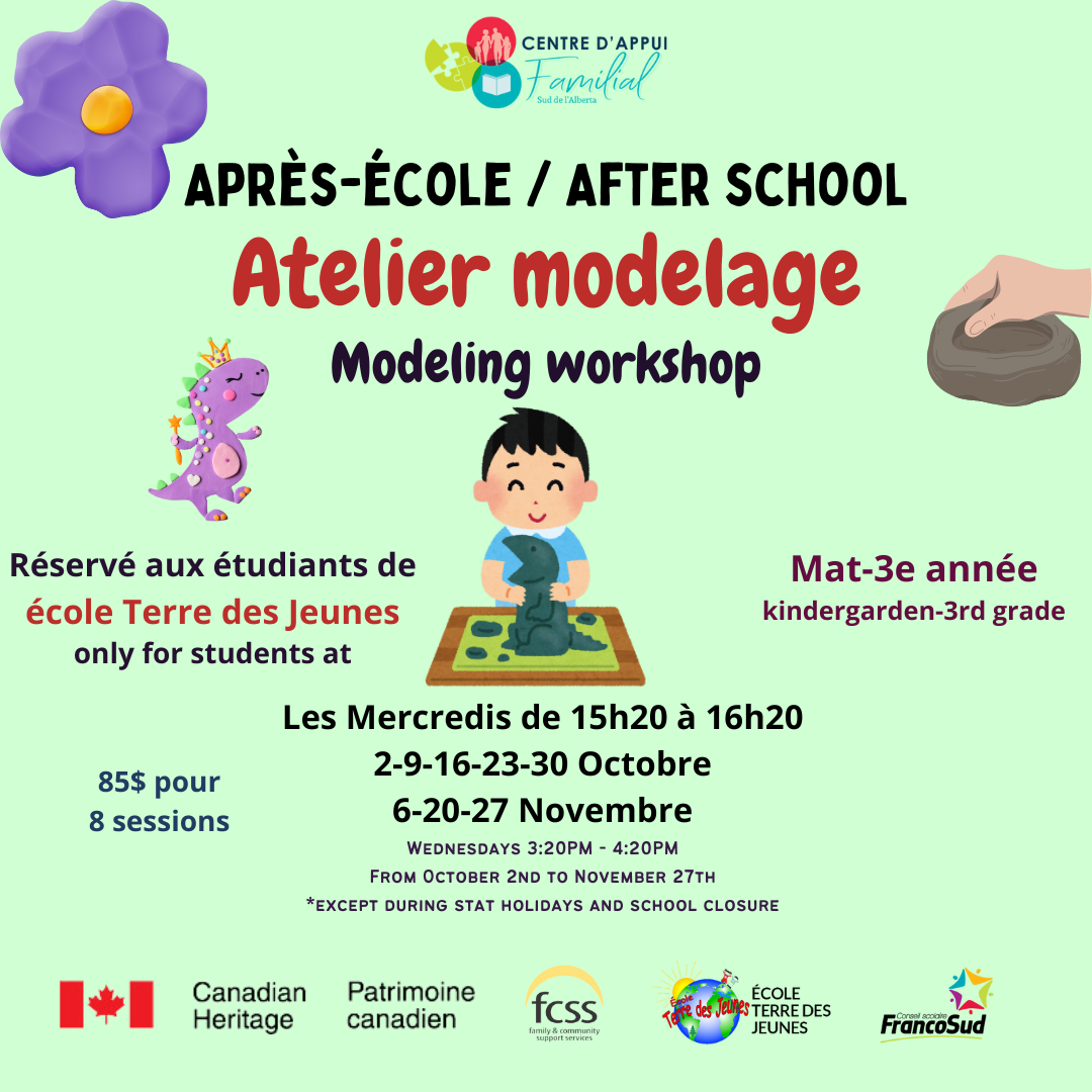 Accueil – Calendrier – Après-Ecole Modelage (mat-3e année) – Automne 2024 – Terre des Jeunes