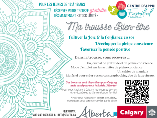 Si vous habitez à l’intérieur des limites de la ville de Calgary, vous pouvez venir récupérer votre trousse sur rendez-vous à la bibliothèque du Centre d’appui familial à partir du 7 décembre. Vous aurez la chance de choisir votre matériel pour la création de vos cartes scrapbooking.